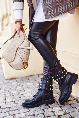 Bottes Femme Avec Boucle Dorée Noir Happy Su