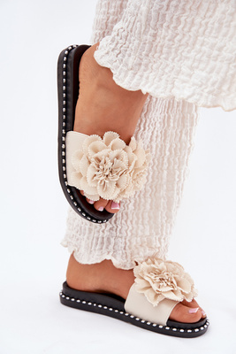 Sandales Femme Avec Fleurs En Tissu Beige Elachase