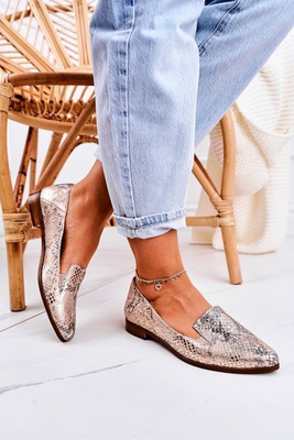 Mocassins Femme En Cuir Imprimé Animal Or Scarlett