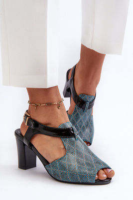 Sandales pour femmes à talon haut et bride décorative en cuir écologique noir Triavera