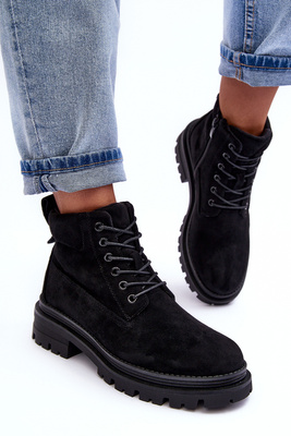 Bottines à Talon Plat en Daim avec Semelles Rembourrées Noir Neafgi