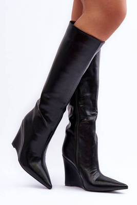 Bottes En Cuir Sur Plateforme Noir Delinn