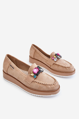Chaussures à enfiler en daim pour femmes Beige Fiorell