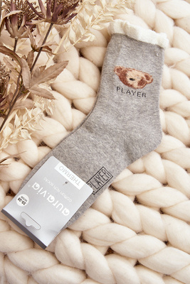 Chaussettes Épaisses En Coton Avec Ours Gris Clair