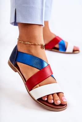 Sandales En Cuir Avec Cordons Bleu Pouilles