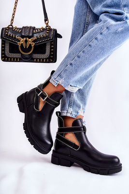 Bottines En Cuir Pour Femme Avec Clous Noir Clares