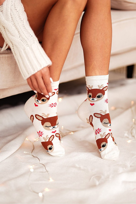 Chaussettes de Noël pour Femmes Chiens dans un Chapeau de Père Noël Beige