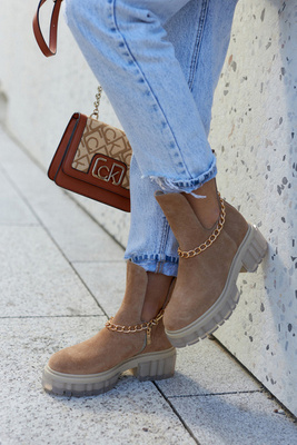 Bottines en daim à la mode avec une coupe camel, oubliez-moi