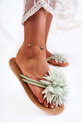 Tongs Femme Avec Ornement En Tissu Vert Eviana