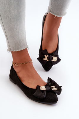 Ballerines pour femmes en éco-daim avec nœud et broche Noir Satris