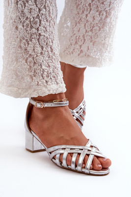 Sandales pour Femmes en Simili Cuir à Talon Bas Argenté Monsha