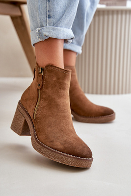 Bottines doublées pour femmes à talon bloc en Velarilla marron