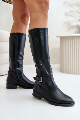 Bottines isolées femme à talons plats avec boucle dorée noir Arsisna