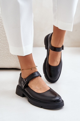Mocassins Femme En Cuir Eco Avec Sangle Noir Vinceza 62179