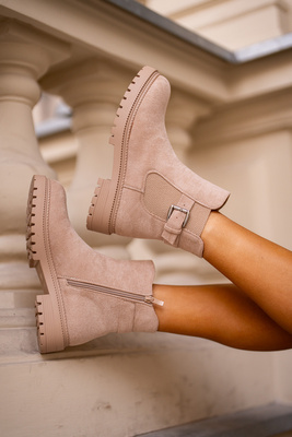 Bottines chaudes avec fermeture éclair et boucle beige Kikiella