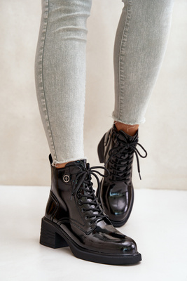 Bottines en cuir verni sur bloc chaud D&A JC42-78 Noir