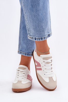 Baskets basses pour femmes en simili cuir blanc-rose Navidemi