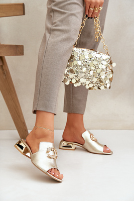 Sandales Élégantes En Cuir Pour Femmes À Talon Bas Laura Messi 2874 Dorées