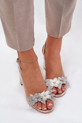 Sandales Transparentes Avec Fleurs Sur Talon Décoré D&A MR38-331 Argent