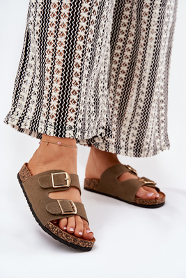 Sandales Femme Sur Plateforme En Liège Avec Boucles Dorées Vertes Lisavionea