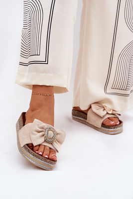 Sandales Femme Sur Plateforme Avec Nœud Et Broche Décorative Beige Lenela