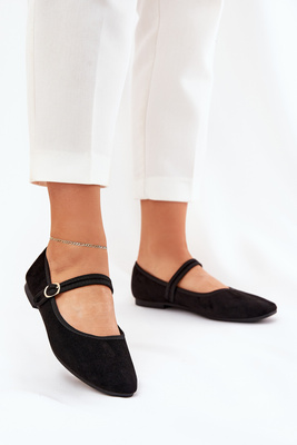 Ballerines Avec Sangle Et Boucle En Suède Écologique Noires Vikilora