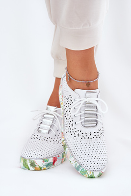 Chaussures à Talon Wedge en Cuir pour Femmes Artiker 56C1799 Blanc-Argent