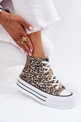 Baskets Femmes Hautes Sur Plateforme Massive Avec Clips Léopard Doré Olivana