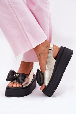Sandales en cuir pour dames sur plateforme avec nœud CheBello 4641 or-noir