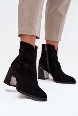 Bottes pour femmes en daim à talon bloc avec embossage doublé Vinceza 66801 noir