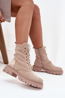 Boots de travail pour femmes avec cristaux sur la langue beige Rosira
