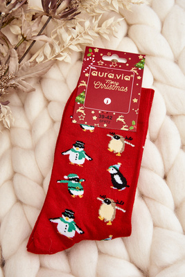 Chaussettes de Noël en coton pour hommes avec pingouins rouges