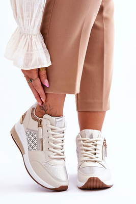 Chaussures de sport en cuir pour femmes sur une cale Catrine blanche