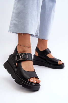 Sandales compensées et plateformes noires pour femmes en cuir écologique Triaola