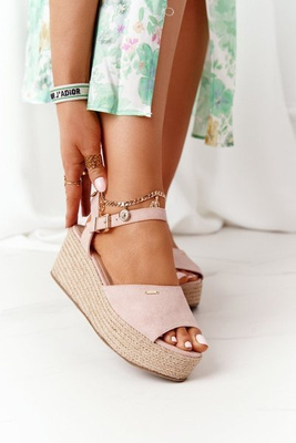 Sandales Compensées Tressées Rose Clair Avocat