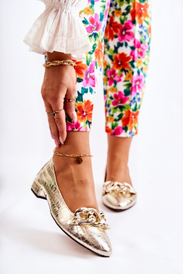 Chaussons Femme Cuir Motif Crocodile Sur Talon Doré Perry