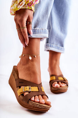Chaussons Femme Sur Compensée Inblu EN000024 Marron-Jaune