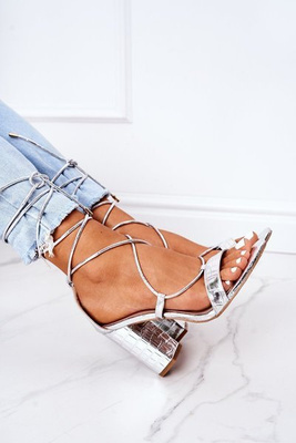Sandales à talons hauts à lacets et bout carré Silver Runway