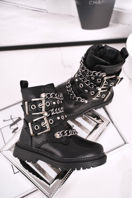 Bottes Enfant Chaudes Avec Boucles En Fourrure Chaîne Noir Fun Time
