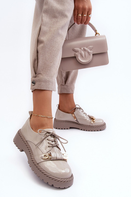 Bottines À Lacets Brillantes Pour Femme Beige Foncé SBarski MR870-72