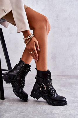 Bottines En Cuir Avec Ceinture Et Clous Noir Lanelly