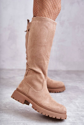 Bottes à talons plats en daim pour femmes Beige Fiorenz