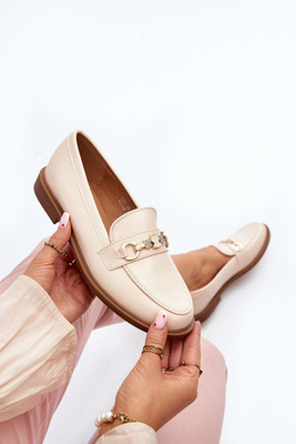 Mocassins en cuir écologique à talon plat pour femmes Beige Vimedia