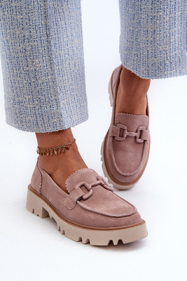 Mocassins pour femmes en daim beige avec ornement D&A TW117 Beige