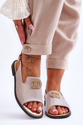 Chaussons Pour Femmes Avec Pierres Décoratives S.Barski KV-576-3 Or