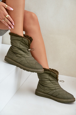 Bottes de neige pour femmes avec cordon de serrage isolées en peau de mouton vert foncé Vamidra