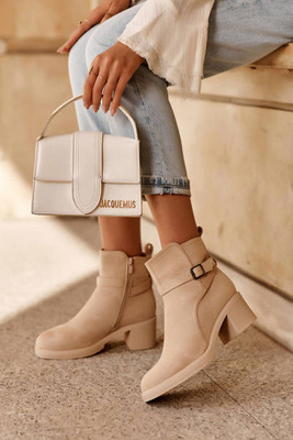 Bottines à Talons en Daim Ornées de Bijoux Beige Foncé Jadirel