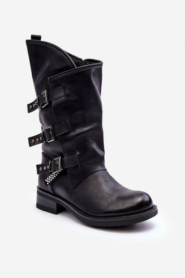 Bottes Laquées Avec Boucle Ornementale Noir Sevil