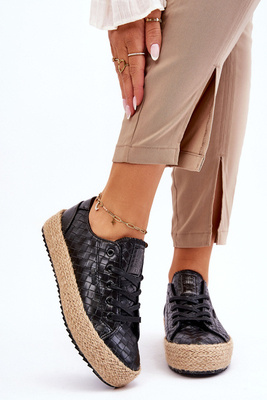Espadrilles Nouées Sur Plateforme Tressée Big Star JJ274396 Noir