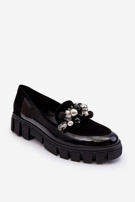 Mocassins Femme En Daim Avec Ornements Noir Leah